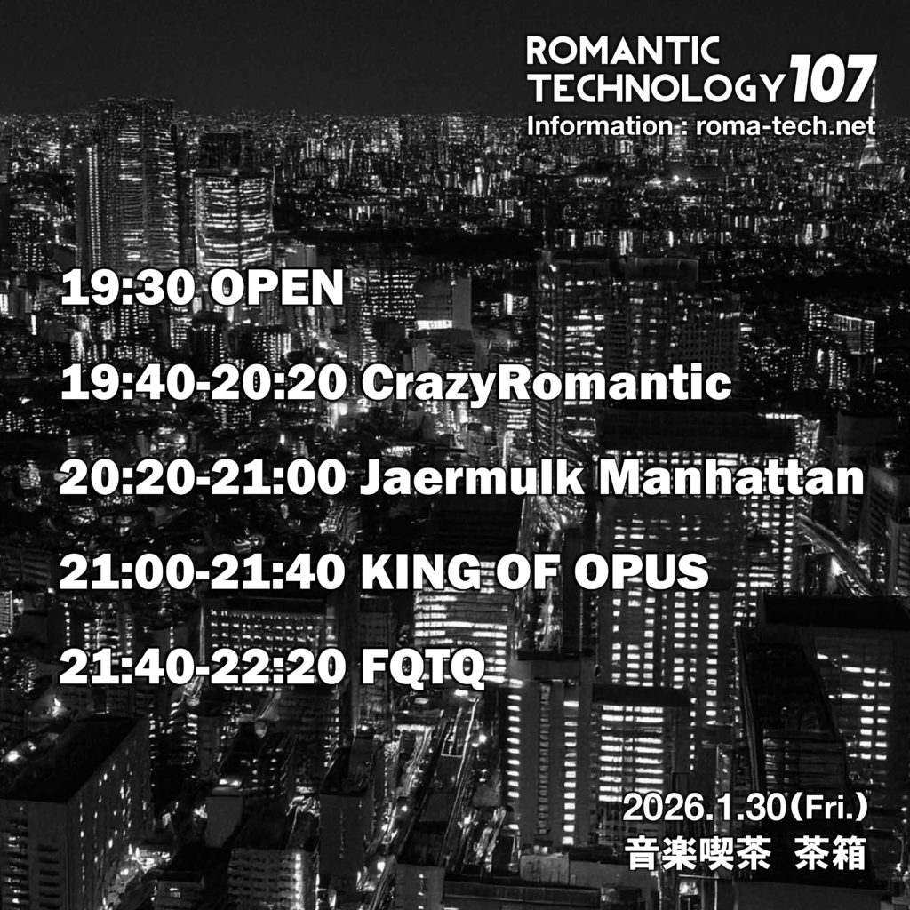 2023年11月よりミュージックイベントROMANTIC TECHNOLOGY 通称”ロマテク”やレーベルROMANTIC TECHNLOGY RECORDS、RT TRAXを主宰している。